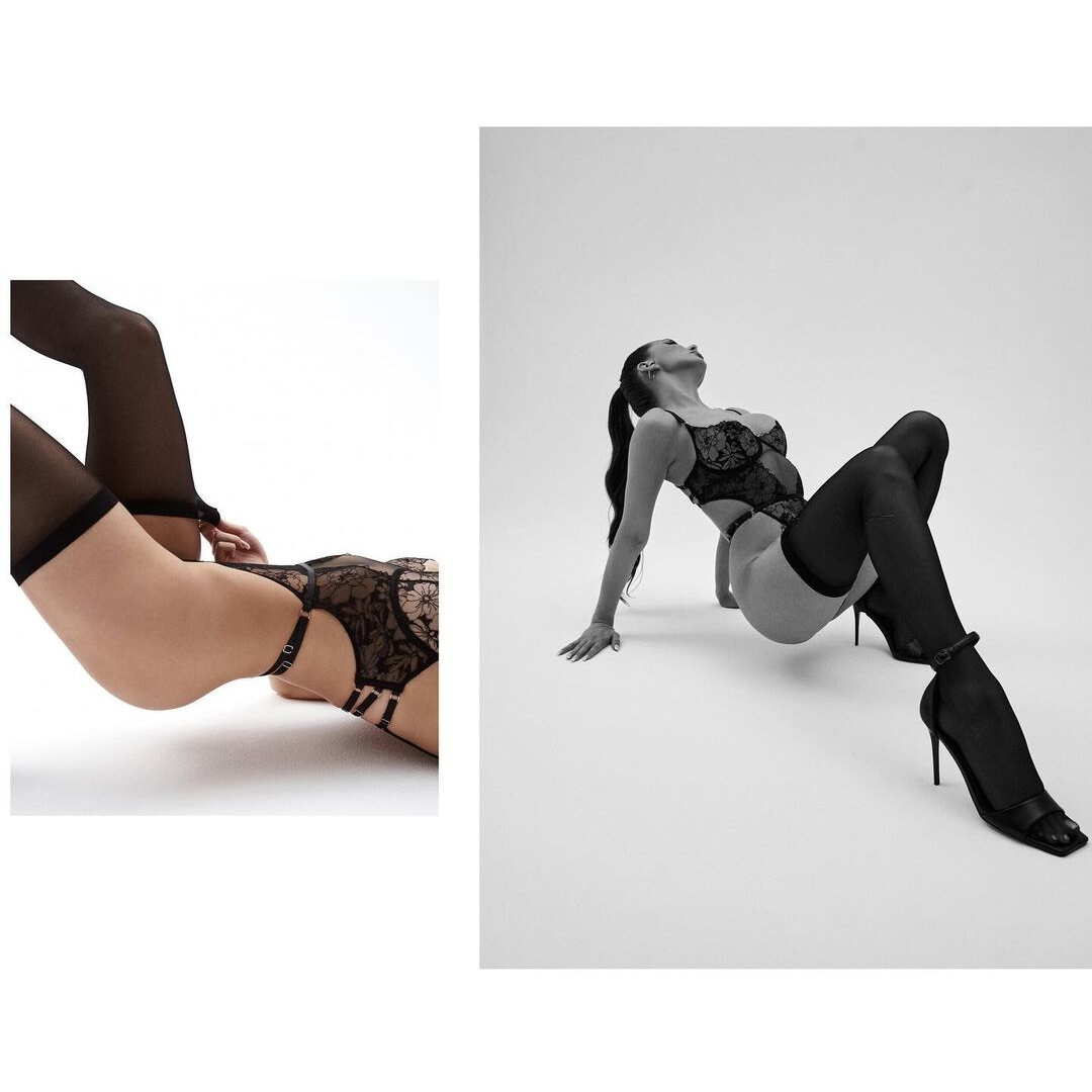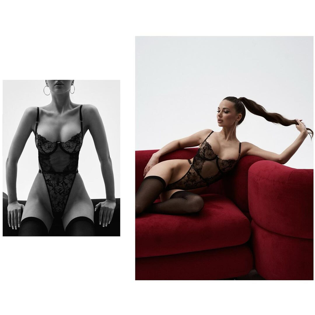The CASEY bodysuit, with its floral lace and bold central opening, is designed to be the sexiest and most luxurious bodysuit. Very high-cut, it highlights and elongates your figure, adding a touch of elegance and glamour.